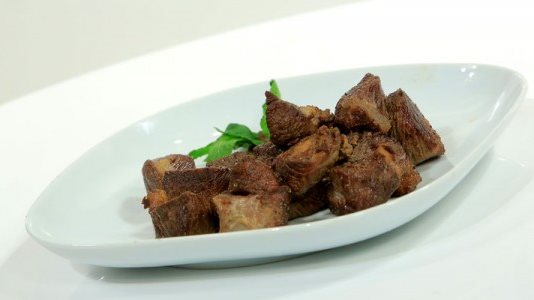 * تحمر أفخاذ الدجاج في الزيت ثم يضاف الثوم والبصل