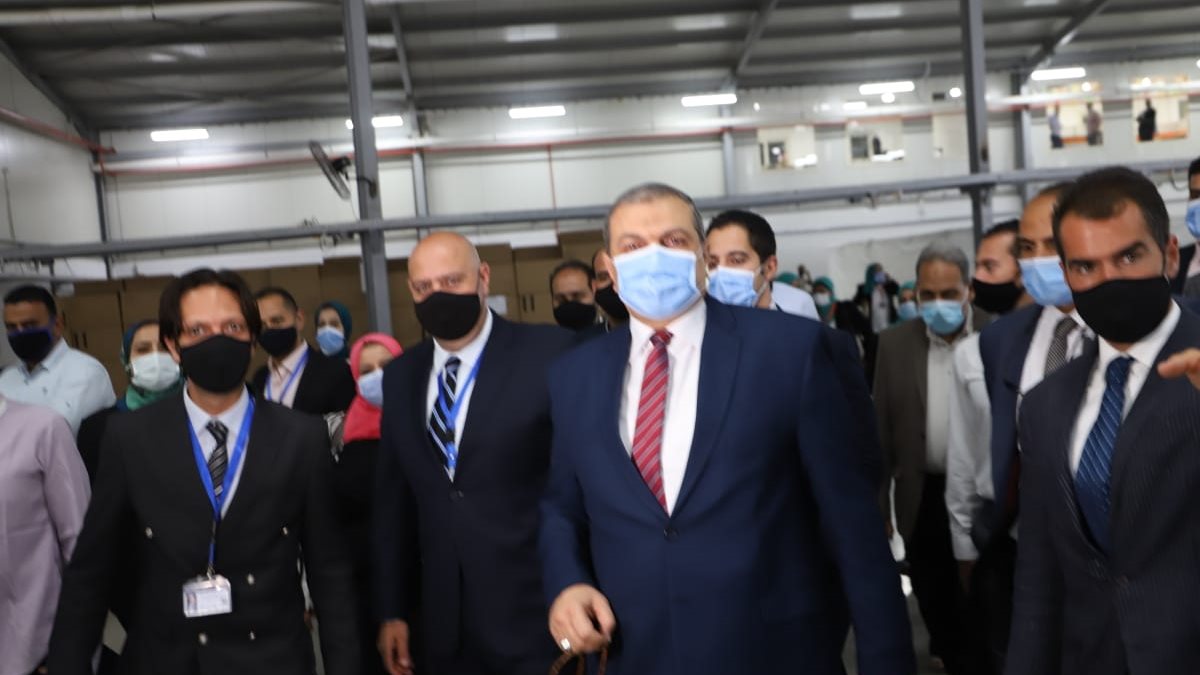 وتفقد الوزير خلال جولته أقسام المصنع، وإجراءات السلامة والصحة المهنية المطبقة داخله، وخطط الإخلاء في حالة الطوارئ، فضلا عن ضمان تنفيذ إجراءات الوقاية من انتشار فيروس كورونا المستجد، والتأكد من توفير وسائل الحماية والوقاية للعاملين بالمصنع.