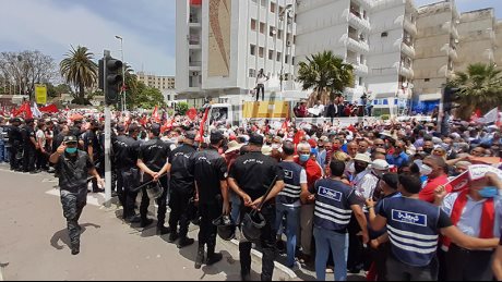 وأكدت مصادر أمنية للإذاعة التونسية، أن ترخيص المسيرة لا يشمل الساحة، وحدثت مناوشات بين الأمن والمتظاهرين.