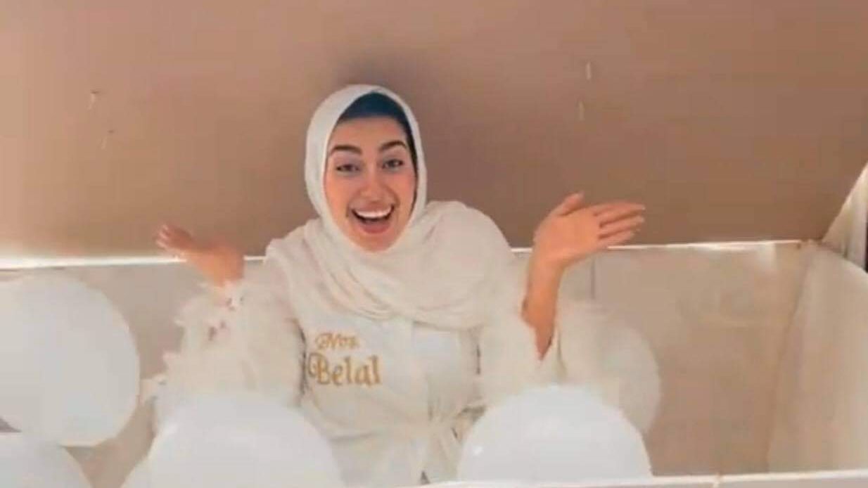 شاركت البلوجر الشهيرة" هدير عاطف" متابعيها بأول صورة من حفل زفافها اليوم ،حيث ظهرت خلال فيديو وهي تخرج من صندوق كبير بصور كوميدية.