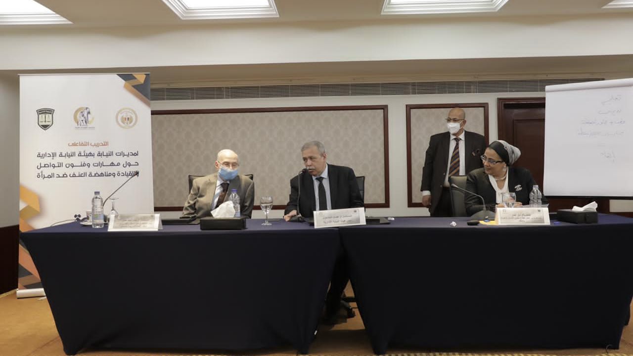 اختتمت اليوم فعاليات التدريب التفاعلي لمديرات النيابة بهيئة النيابة الإدارية حول مهارات وفنون التواصل والقيادة ومناهضة العنف ضد المرأة فى إطار التعاون المشترك بين وزارة العدل والمجلس القومي للمرأة وهيئة النيابة الإدارية بحضور المستشار عصام المنشاوي رئيس هيئة النيابةالإدارية ،المستشار سناء خليل عضو المجلس القومي للمرأة ومقرر اللجنة التشريعية بالمجلس ، القاضية أمل عمار عضوة المجلس ومساعد وزير العدل لقطاع حقوق الإنسان والمرأة والطفل ، المستشار هاني جورجي رئيس محكمة الإستئناف القاهرة وعضو اللجنة التشريعية بالمجلس القومي للمرأة ،الدكتور شريف صلاح إستشاري التدريب والتطوير ،المستشار أحمد النجار رئيس محكمة الإستئناف ومستشار وحدة مناهضة العنف وذلك بمشاركة مجموعة من مديرات النيابة بهيئة النيابة الإدارية.