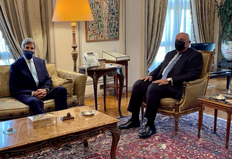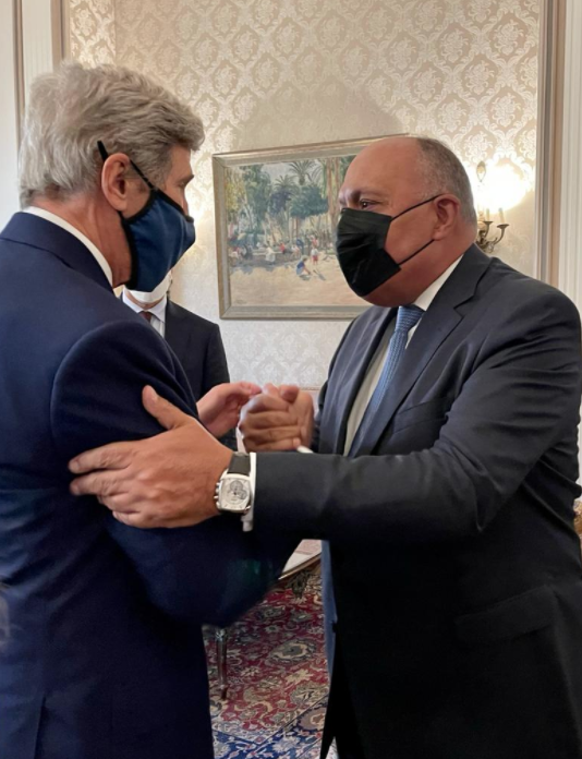 كما استقبل شكرى في اليوم ذاته أيضا جون كيرى المبعوث الرئاسى الأمريكى لشئون المناخ، وأكد عقب المباحثات، أن زيارة المبعوث الرئاسي الأمريكي إلى القاهرة جاءت لتجديد تأكيد التعاون طويل الأمد بين مصر والولايات المتحدة في مختلف المجالات وفيما ما يتعلق بتغير المناخ والأهداف المشتركة التي نسعى لتحقيقها ولتعزيز اتفاقية باريس وأهدافها والإعداد لمؤتمر قمة المناخ «كوب 26» المقرر ان تستضيفه بريطانيا في نوفمبر المقبل، والقمة السابعة والعشرين التي تتطلع مصر لاستضافتها.