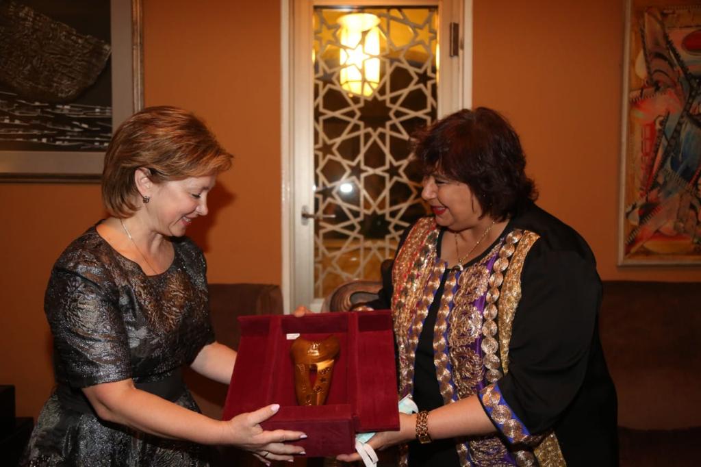 ثم قامت وزيرة الثقافة باهداء درعا تذكاريا لنظيرها الروسى بالاضافة الى مجموعة كتب عن الثقافة والحضارة والادب المصري الى جانب بعض التذكارات التقليدية لنائبته .