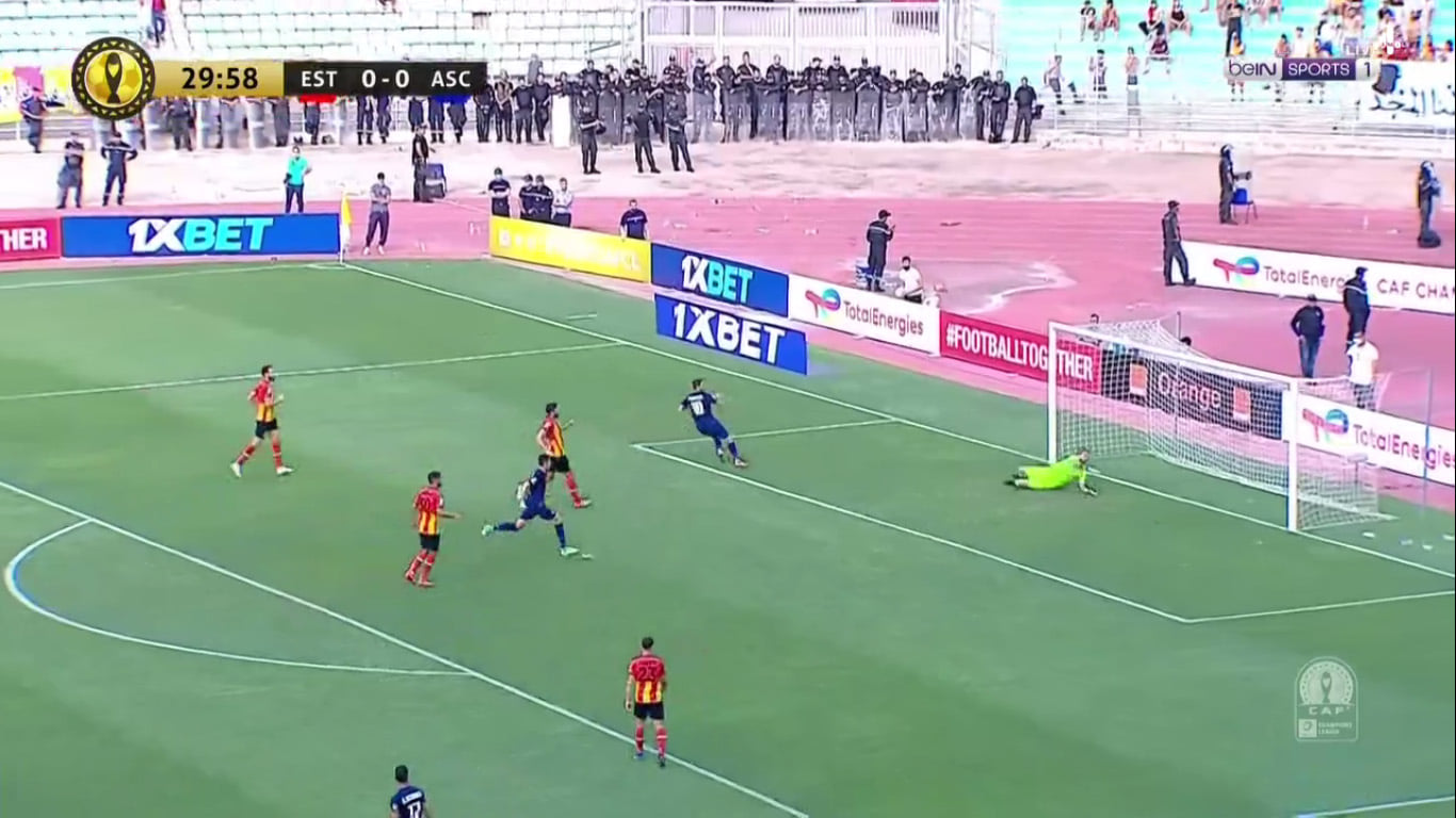 ونجحت دفاعات الأهلي فى مباراة الترجي فى ذهاب نصف نهائى دورى أبطال إفريقيا فى إبعاد إحدى الكرات الخطيرة داخل منطقة الجزاء فى الدقيقة الرابعة أرسلها الليبي حمدو الهوني داخل منطقة الجزاء من ضربة ركنية.