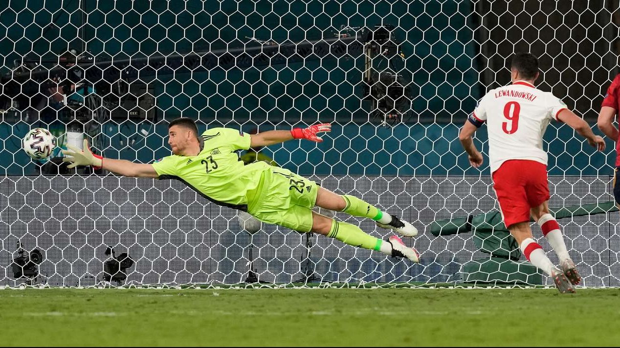 ونجح روبرت ليفاندوفسكي نجم بايرن ميونخ فى تسجيل هدف التعادل لمنتخب بولندا فى الدقيقة 54 من زمن المباراة، من رأسية رائعة على يمين أوناى سيمون حارس الماتادور.