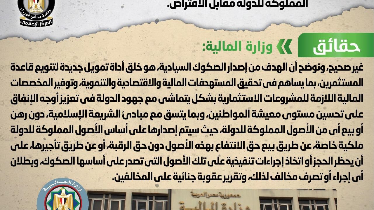 كما يستهدف أيضا إصدار صكوك سيادية مطابقة لمبادئ الشريعة الإسلامية إعمالا للمادة 2 من الدستور المصري، وهى أحد أنواع الأوراق المالية الحكومية التي من شأنها جذب مستثمرين جدد مصريين وأجانب ممن لا يستثمرون في الإصدارات الحكومية الحالية من الأوراق المالية وأدوات الدين.