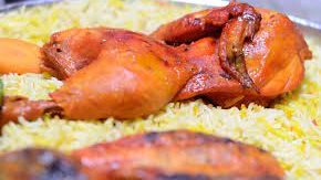 10- ضعي الأرز في طبق التقديم ونقوم برص قطع الدجاج عليه، ثم نقدم مندي الدجاج.