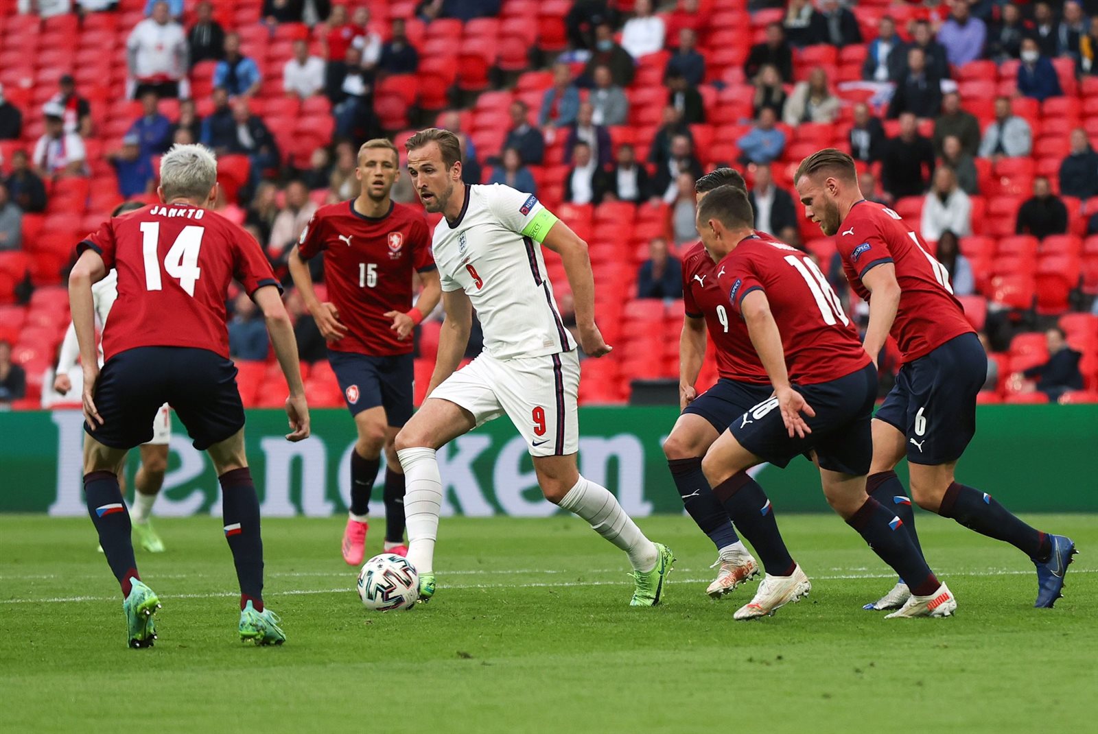 وفي الدقيقة 27، أهدر هاري ماجواير فرصة تسجيل هدف التقدم لإنجلترا، عندما أرسل له تريبير كرة عرضية من الجهة اليمنى، ليقابلها برأسه، لكن تسديدته ضلت طريق الشباك.