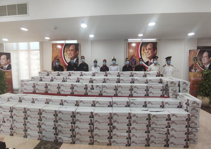 وقامت اجهزة الأمن بوزارة الداخلية بتوزيع عدد من المساعدات العينية (مواد غذائية متنوعة) بالمجان على المواطنين وذلك بعد إتخاذ الإجراءات الإحترازية والوقائية التى تنفذها وزارة الداخلية داخل جهات وزارة الداخلية ضمن الخطة المتكاملة المتبعة للوقاية من فيروس كورونا المستجد وذلك استمرارا لتفعيل مبادرة "كلنا واحد “ تحت رعاية رئيس الجمهورية”.