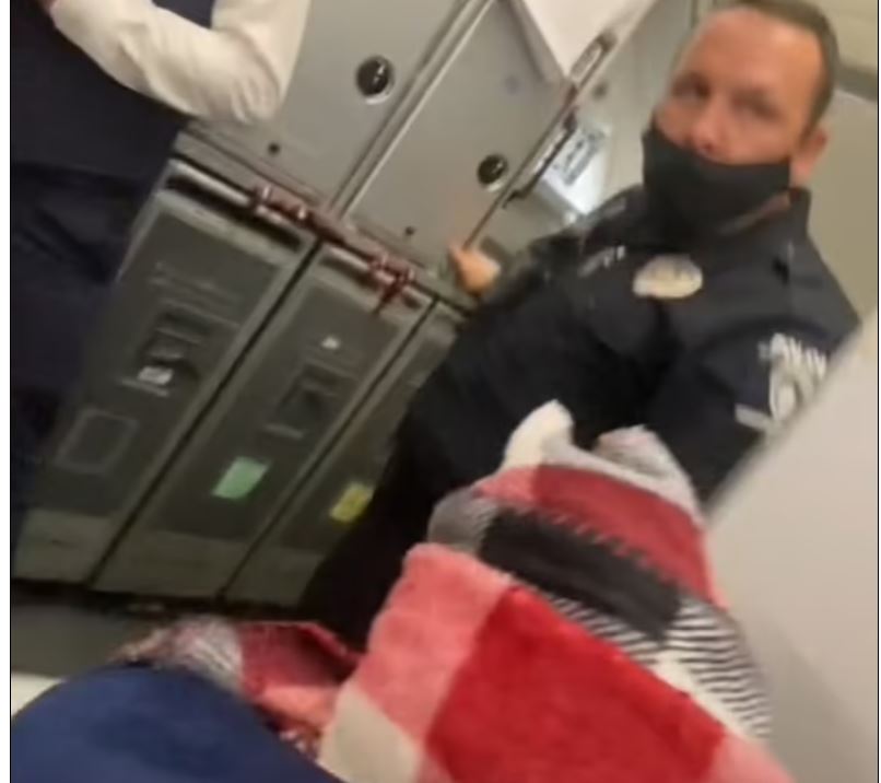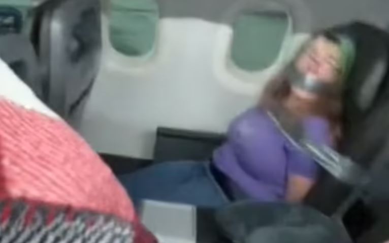 بعد هبوط الطائرة ، كان من الممكن رؤية راكبة مثبتة على مقعدها بشريط لاصق يوضع مباشرة على فمها، حيث أُجبرت على البقاء في مقعدها بينما ُسمح للركاب الآخرين بالنزول من الطائرة.
