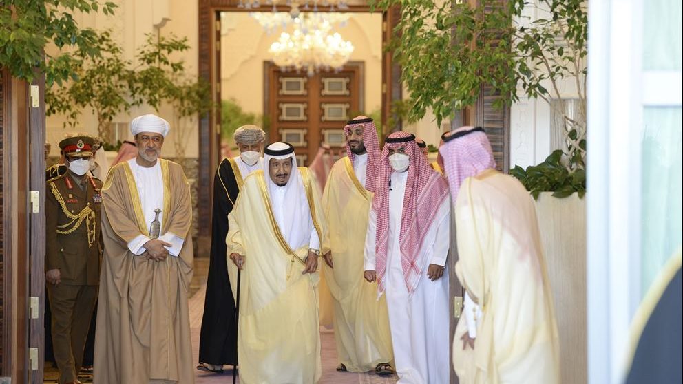 عقد السلطان هيثم بن طارق سلطان عُمان، وخادم الحرمين الشريفين الملك سلمان بن عبدالعزيز آل سعود ملك المملكة العربية السعودية، جلسة مباحثات رسمية بمدينة نيوم السعودية مساء أمس "الإثنين".