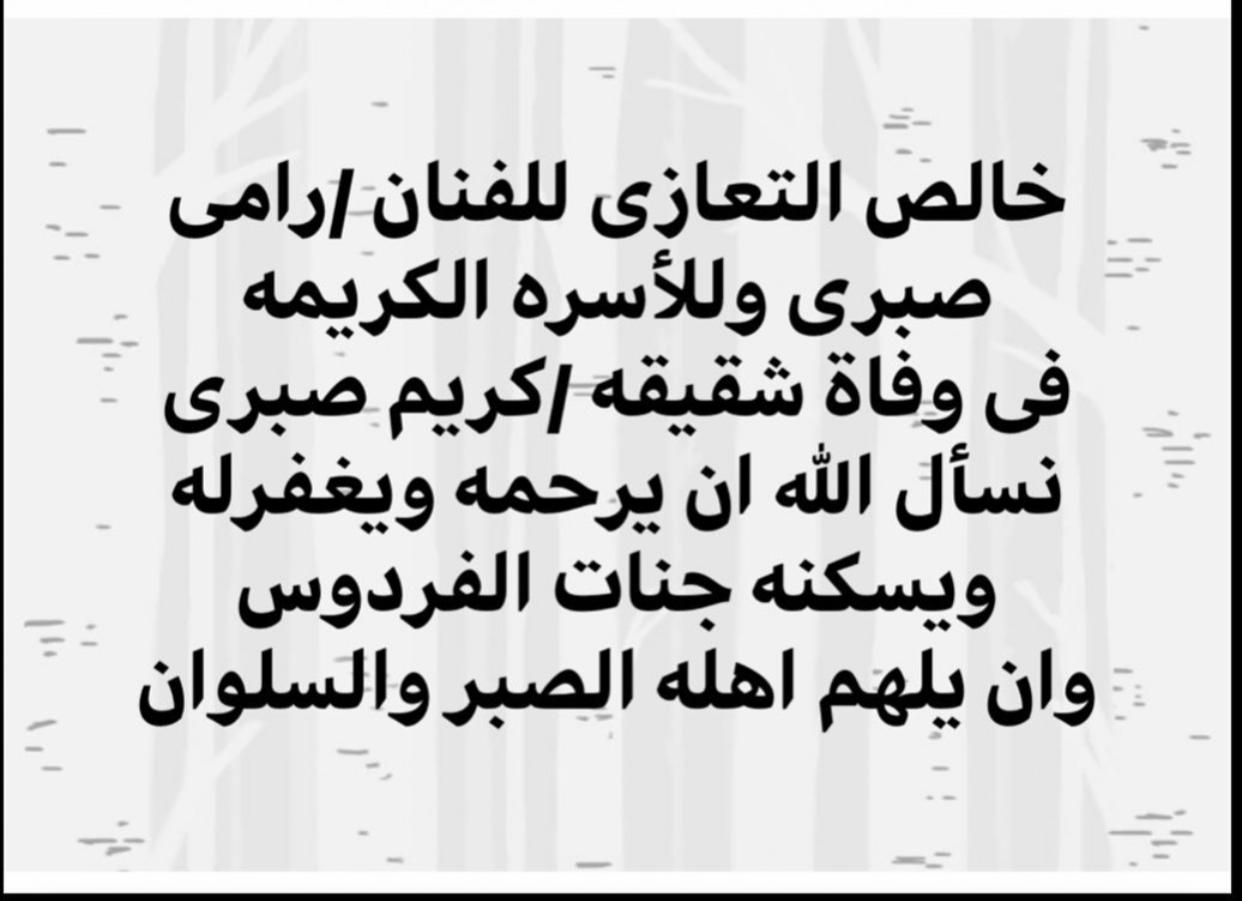كتب رامي صبري: “توفي الى رحمة الله اخي الغالي كريم صبري ندعو الله ان يرحمه ويغفر له”.
