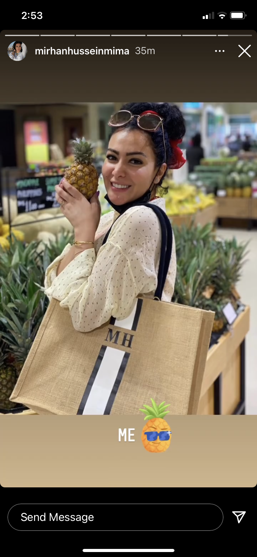 وتألقت مريهان حسين بإطلالة مبهجة و في يدها فاكهة الاناناس مما أثار اعجاب متابعيها.