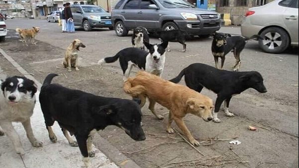 الكلاب الضالة منتشرة علي الأرصفة وفوق السيارات