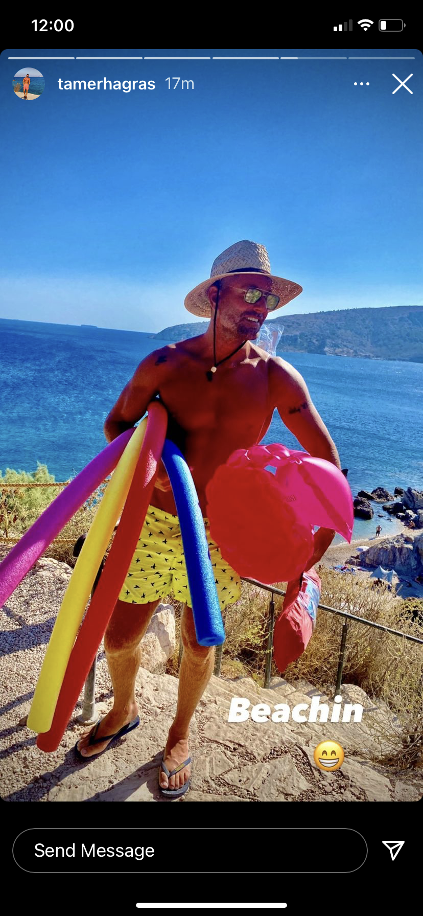 وظهر تامر هجرس في الصورة من امام البحر و هو يحمل العوامات و يستمتع بقضاء عطلته الصيفية مما اثار اعجاب متابعيه .