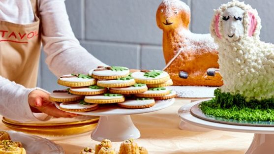 5. ثم إبدئي بصنع كرات متوسطة الحجم من الكيك، وصفيها في صينية مدهونة بالقليل من الزبدة.