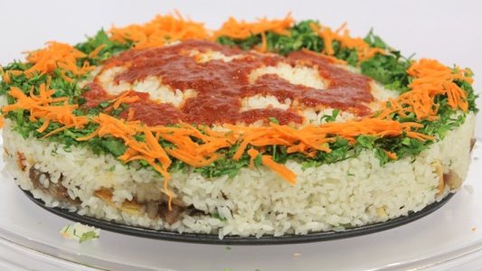 * شوربة الكوارع و قطع الوارع وبعد ذلك الأرز ونزينه بالصلصة ثم ضعيه في الفرن لمدة عشر دقائق وقدميها مع الشوربة