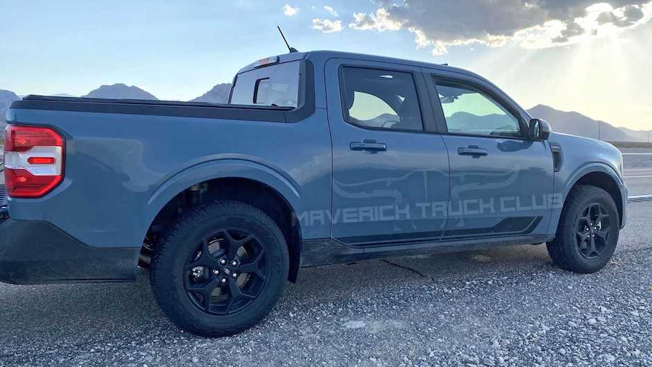 تعتمد الشاحنة فورد مافريك على عجلات رياضية كبيرة مدعومة بجنوط معدنية ذات تصميم النجمة المتشعبة بإطلالة سوداء اللون، مع مصابيح أمامية ضخمة، و عواكس اضاءة جانبية مع مقدمة بارزة، كما تمتعت بطلاء خارجي اقرب من لون ناردو جراي، و لكن باسم AREA 51المميز أيضا، بالإضافة إلى صندوق خلفي لحمل الامتعة، و مرايات جانبية باللون الأسود، و عتبات خلفية بارزة، و مقصورة رباعية الأبواب مع زجاج خلفي يربط بين قمرة القيادة و المساحة الخلفية.