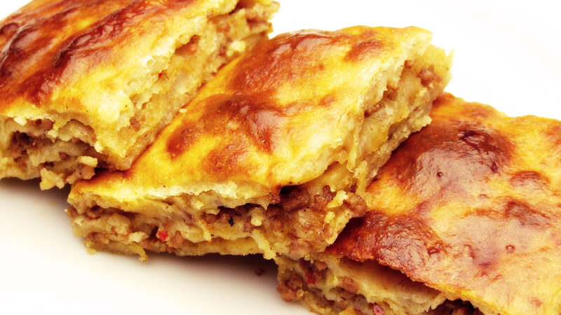 4- ضعى اللحمة المعصجة والجبنة الموتزاريلا على الرقاق ولفيه أو طبقيه