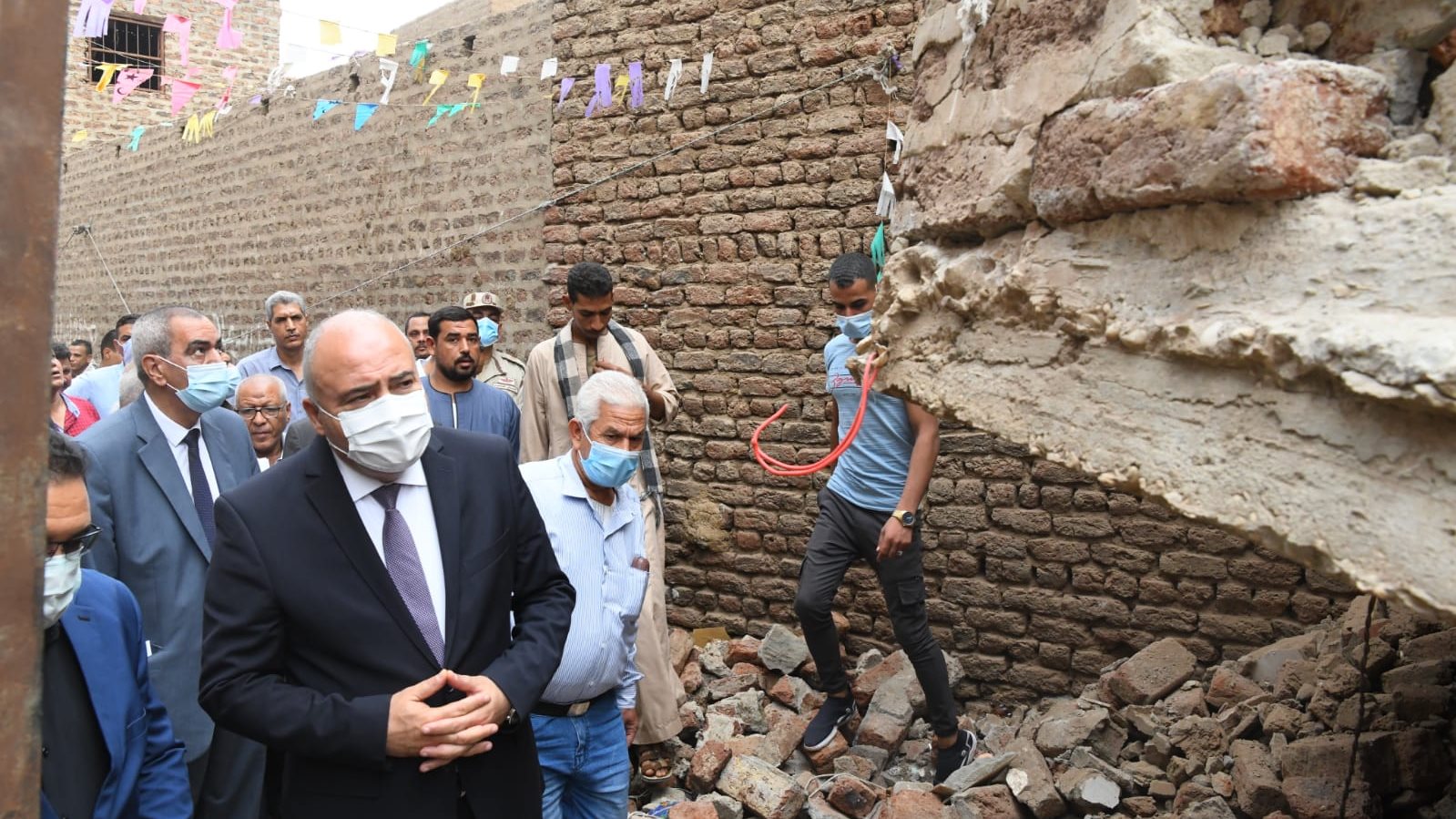 محافظ قنا يزور الأسر المتضررة من انهيار منزل بقرية فاو قبلى ويقدم واجب العزاء لأسرة الطفل المتوفي