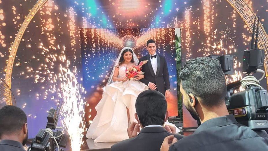 و أقيم حفل الزفاف في جو عائلي بهيج بفندق سونستا الطيران الجمعة الماضية بحضور أهالي العروسين وكوكبة من نجوم المجتمع .
