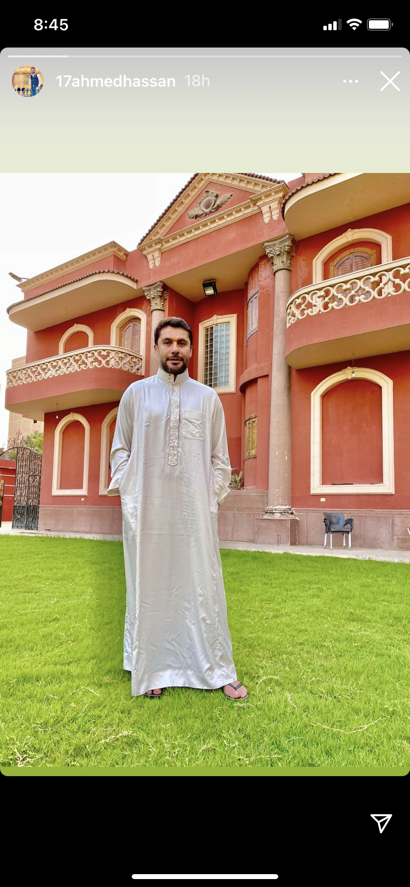 وظهر أحمد حسن في الصورة بالجلابية بعد غياب فترة عن مواقع التواصل الاجتماعي.