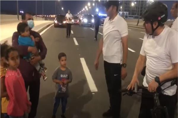 داعب الرئيس عبد الفتاح السيسي طفلة خلال جولته بالدراجة في مدينة العلمين الجديدة، عندما كان يتحدث مع والدها، قائلا لها "بتذاكري وتاكلي كويس ولا لأ".