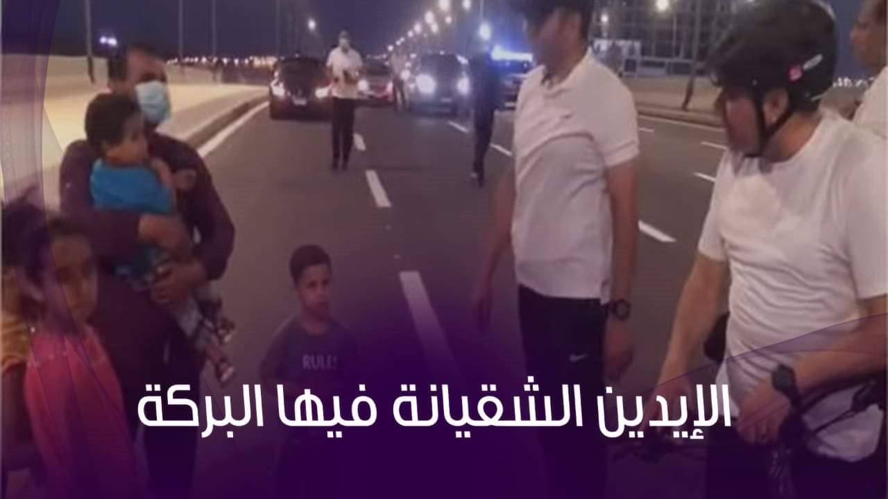 وسأل الرئيس السيسي، أبناء الأب عن طموحاتهم وأحلامهم، وأعجب الرئيس بتفكير الأطفال و طموحاتهم نحو المستقبل، فيما رد الوالد “ربنا يخليك لينا ياريس، ربنا يطولنا فى عمرك”، وفي نهاية الفيديو قال الرئيس السيسي للأب "الإيد الشقيانة ديه يد فيها البركة".