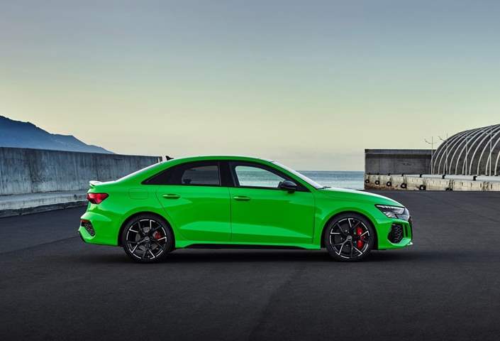 و مازال الصانع الألماني يبهر متابعيه بالعديد من الإصدارات القوية من بينهم النسخةRS3 موديل 2022 الجديدة و التي تنتمي إلى فئة السيدان، حيث ظهرت السيارة بالعديد من اللمسات الرياضية، مع موجات بارزة و غائرة تعزز من قدراتها على التعامل مع الحركة الديناميكية للهواء، بينما ترتكز على عجلات رياضية يبلغ قياسها 19 بوصة، مدعوم بجنوط انيقة ذات تصميم هندسي فريد تجمع بين اللون الأسود و الفضي.