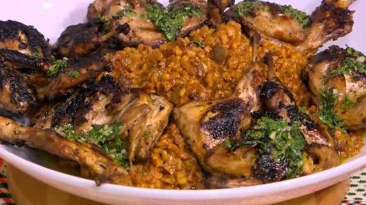 * * يضاف عصير الليمونة وزيت الزيتون والكمون وقشر الليمونة ثم تقدم بالهنا