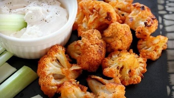 4- يوضع القرنبيط في طبق التقديم وأعلاه صلصة الطحينة، ثم يتم تزيينه بالبقدونس.