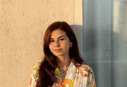 ظهرتريا أبي راشد وهي ترتدي فستان قصير من القطن باللون الأبيض بأكمام طويلة وقصة مميزة من الأكتاف واختارت حذاء باللون الذهبي، وهو ما أعطاها إطلالة أنيقة وساحرة.