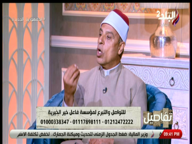 وأضاف الدسوقي خلال لقاء له لبرنامج “تفاصيل” عبر فضائية “صدى البلد 2” أن الابتلاء جنة الناس الصالحين مشيرا إلى أنه من أجل الخروج من أى نوع من الابتلاء يجب اللجوء إلى الله وأن ينفق ويتصدق.