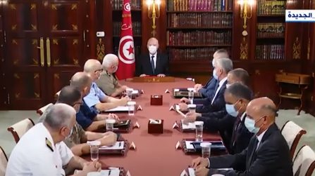 وأعلن سعيّد، عقب اجتماع طارئ عقده في قصر قرطاج مع مسؤولين أمنيين، أنه سيتولى بنفسه السلطة التنفيذية ”بمساعدة حكومة يرأسها رئيس الحكومة ويعينه رئيس الجمهورية“.