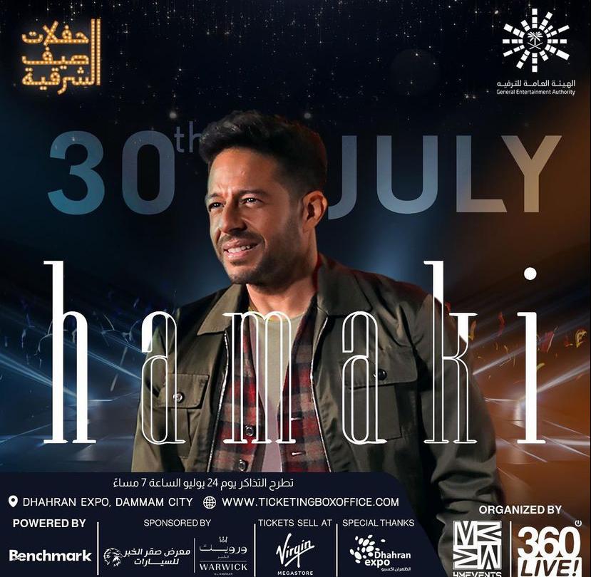 يستعد الفنان محمد حماقى لإحياء حفل غنائي ضمن موسم صيف الشرقية بالسعودية يوم 30 يوليو من الشهر الجاري.