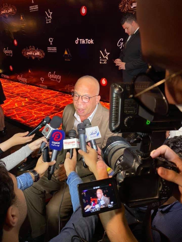 وحرص على حضور العرض الخاص لفيلم الإنس والنمس الفنان شريف دسوقي على كرسي متحرك وسط احتفاء كبير من الحاضرين وابطال الفيلم،