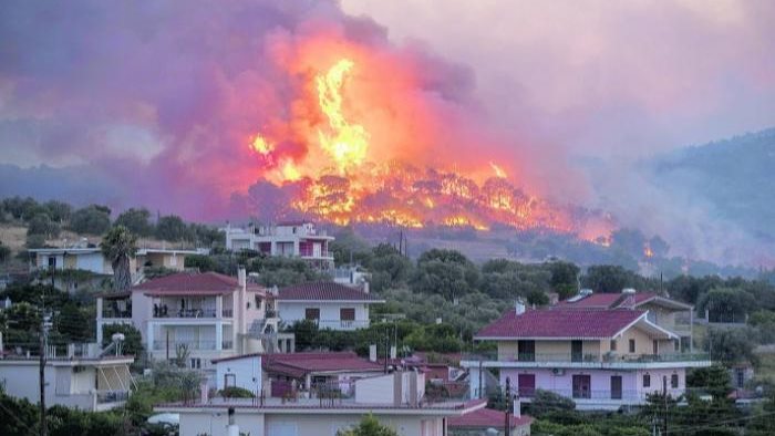 وفي غضون ذلك، دمر ما لا يقل عن 150 منزلا في حريق عنيف أحاط بدير وعشرات القرى في جزيرة إيفيا اليونانية اليوم، وهو حريق واحد فقط من بين حوالي 40 حريقا اندلعت في الدولة التي ضربتها موجات الحر.
