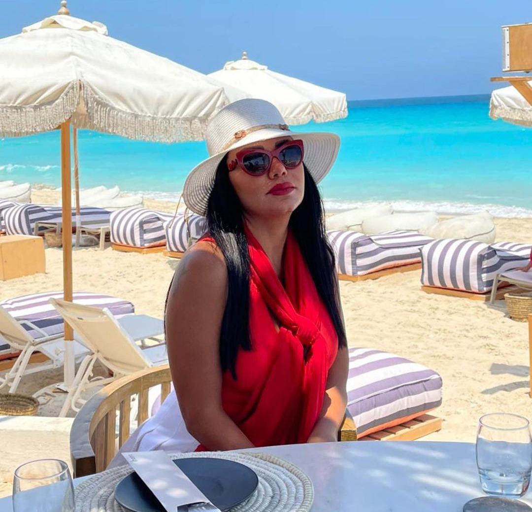 وظهرت رانيا يوسف بإطلالة صيفية أنيقة من أمام البحر، حيث ارتدت فستانا أحمر اللون وشابوه أبيض، في لوك يناسب أجواء الشاطئ.