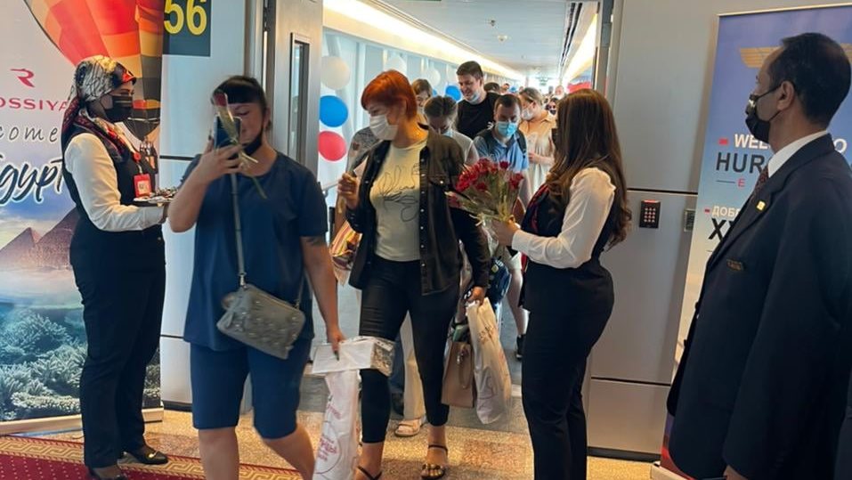 فور هبوط الرحلة الروسية رقم MS724 من طراز إيرباص 300-A330، التي سيرتها الشركة الوطنية مصر للطيران من مطار موسكو إلى مطار الغردقة، تواجد اللواء مراد محمد مدير مطار الغردقة الدولي، على رأس المستقبلين للسياح الروس القادمين على متن الرحلة والبالغ عددهم 300 سائح، حيث تم استقبالهم بالورود وتوزيع هدايا تذكارية احتفاء بالعودة بعد فترة الانقطاع.