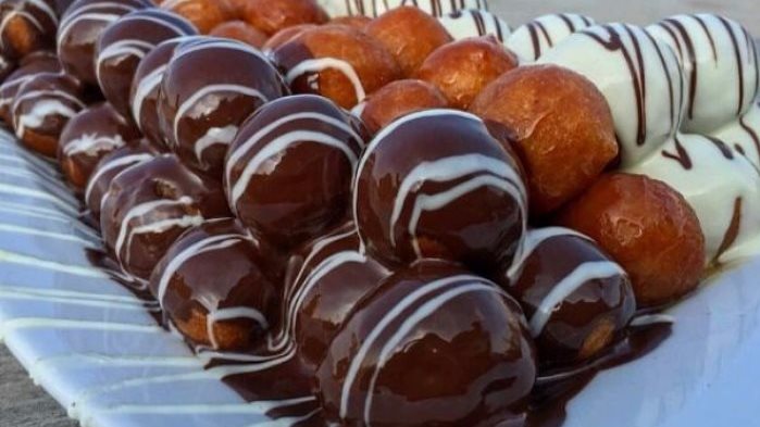 9- اخبزي المعمول الى أن يصبح ذهبي اللون، دعيه يبرد ثم انثري بعض السكر الناعم.