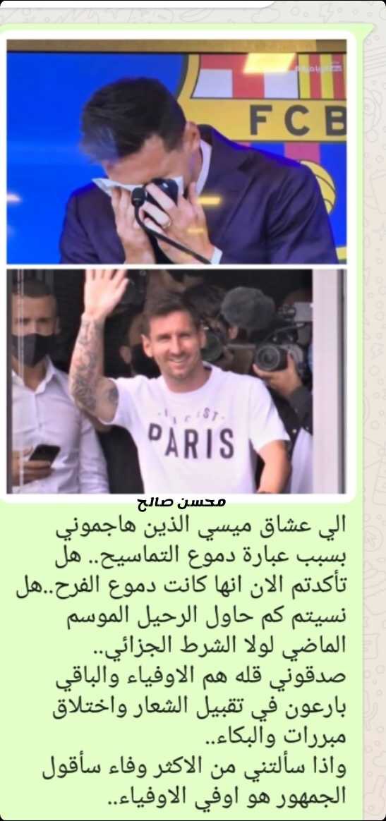 بعد ظهور ميسي الأخير، عاد الكابتن محسن صالح ليثبت لنفسه ولمنتقديه صحة كلامه، ووصفه لمشهد ميسي بدموع التماسيح.