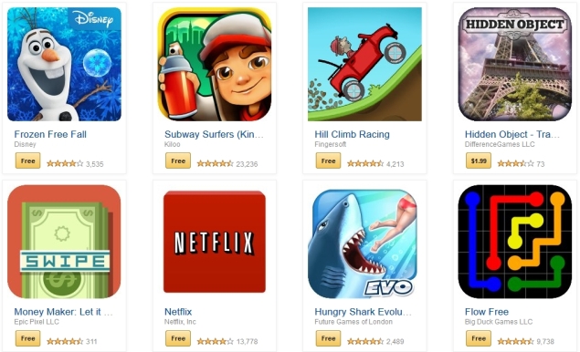 وكما وضعت شركة جوجل علامة مميزة (سهم يرتفع إلى أعلى يمين الشاشة أو ينخفض إلى أسفل اليمين)، تضع تصنيفا على تطبيقات متجرها بناء على الأكثر شعبية بين المستخدمين.