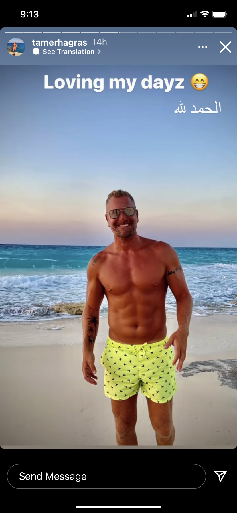 وظهر تامر هجرس في الصورة من أمام البحر و هو يستمتع بقضاء عطلته الصيفية مما أثار إعجاب متابعيه.