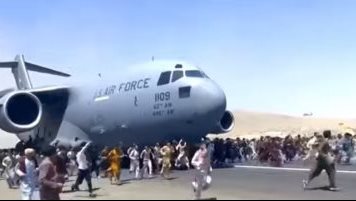 وكان مشهد سقوط مواطنين أفغان وتطايرهم في السماء من على عجلات طائرة أمريكية عسكرية لحظة إقلاعها من مطار كابول في محاولة منهم للهرب، مشهدا مؤثرا ومعبرا عن حالة الفزع والخوف التي يعيشها المواطنون في أفغانستان.