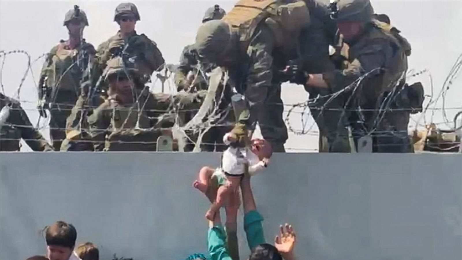 كما رصدت لقطات أخرى بكاء رضيع أفغاني أثناء تسليمه إلى جندي أمريكي في مطار كابول، حيث تم التقاط الطفل بطريقة مثيرة ليتجاوز الأسلاك الشائكة.