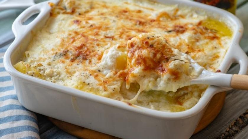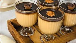 3- ثم وضع جميع المكونات في صنية الفرن ثم يضاف عليه خليط الكراميل