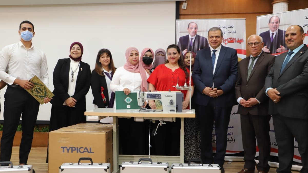 كما قام الوزير بتوزيع 5 ماكينات خياطة ، و 6 شنط عدة للخريجين من مركز التدريب والوحدة المتنقلة بمديرية القوي العاملة ببورسعيد، كما قام بتسليم شهادة تقدير لشركة ايجيبشان لإنتاج الكهرباء لمراعاتها السلامة والصحة المهنية في العمل.