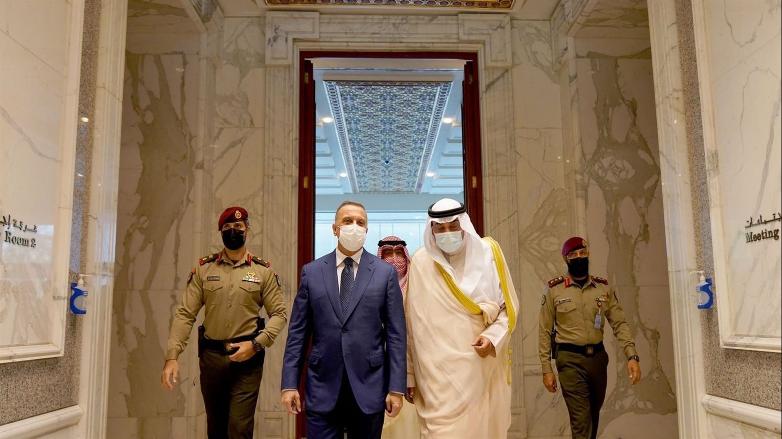 ووصل الكاظمي على رأس وفد رفيع، المستوى، والتقى نظيره الكويتي صباح خالد الحمد الصباح، ورئيس مجلس الأمة مرزوق الغانم.