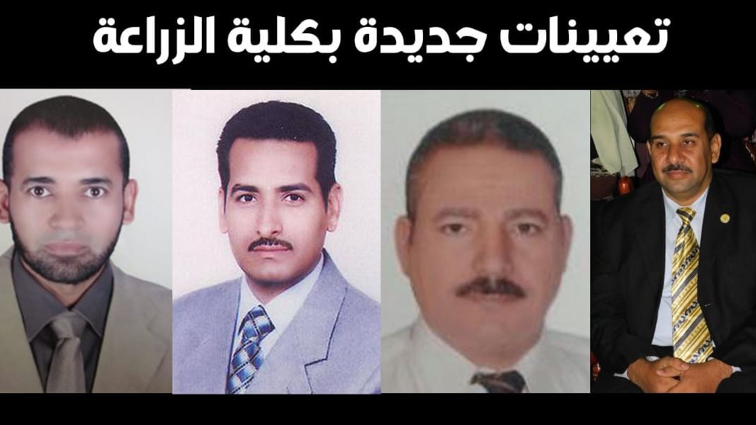 كما اصدر الدكتور عبد العزيز طنطاوي رئيس جامعة الوادي الجديد عددا من قرارات التعيين بكلية الزراعة حيث اصدر قرارا بتعيين أ.د / ايمن يوسف كساب عميدا للكلية وقرارا بتعيين أ.د/حسين فرويز محمد حسن وكيلا للكلية لشئون التعليم والطلاب ومشرف علي قسم تكنولوجيا الاغذية وقرارا بتعيين د/ حاتم عبد القادر محمد حمدون وكيلا لشئون الدراسات العليا بالكلية ومشرف علي قسم الإنتاج الحيواني وقرارابتعيين د/ طلعت بشندي أحمد اسماعيل وكيلا لشئون خدمة المجتمع وتنمية البيئة ومشرف علي قسم الوراثة وقرارا بتعيين د / أحمد محمد أحمد عبد المنعم رئيسا لقسم المحاصيلوقرارا بتعيين د/ أحمد عزيز الدين أبو بكر رئيسا لقسم الأرضي والمياه وقرارا بتعيين د/ محمود إبراهيم محمود السيد الكيلاوي رئيسا لقسم انتاج الدواجن وقرارا بتعيين د / هشام عبد الرحمن إسماعيل السيد رئيسا لقسم الألبان وقرارا بتعيين د / عصام محمد عبد الظاهر رضوان رئيسا لقسم البساتين.