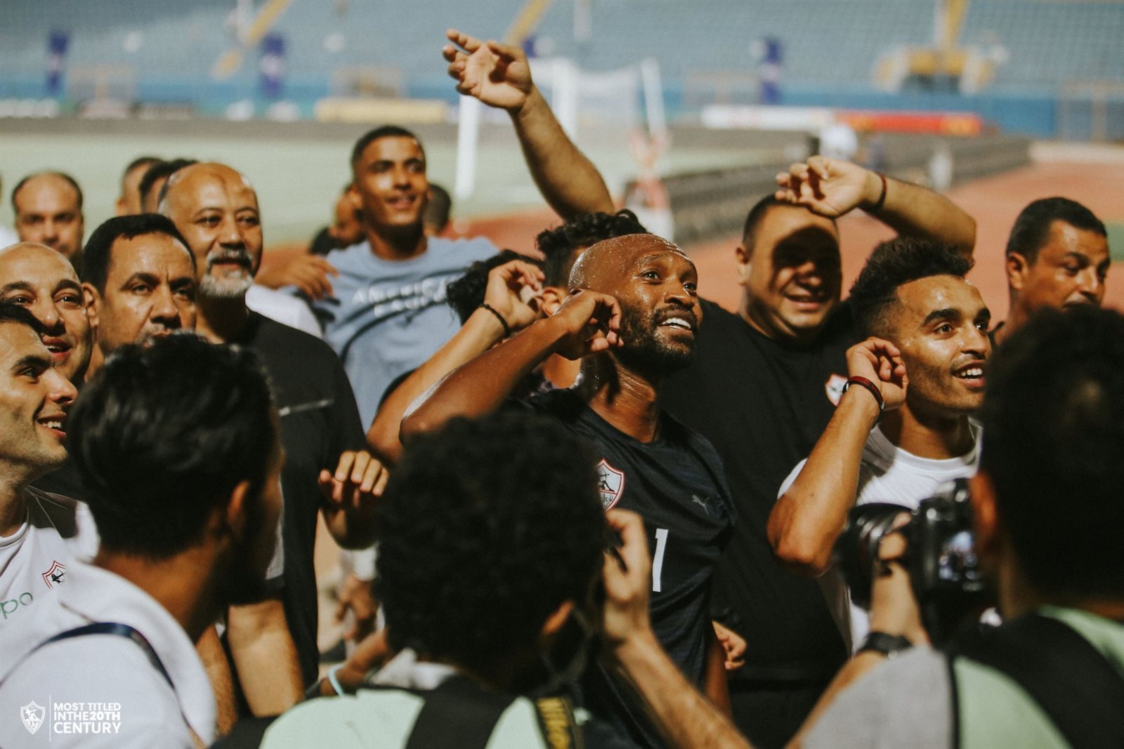 واحتفل جنش بعد نهاية اللقاء مع زملائه والجماهير بتتويج الزمالك رسمياً بلقب الدوري العام.